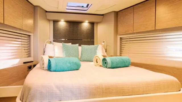 Unter Deck erwartet Sie ein hochwertig gestalteter Innenraum mit eleganten Kabinen, feinen Holzarbeiten und einem modernen, lichtdurchfluteten Ambiente. Jeder Bereich wurde geschaffen, um höchsten Komfort, Privatsphäre und Entspannung auf Premium-Niveau zu gewährleisten.