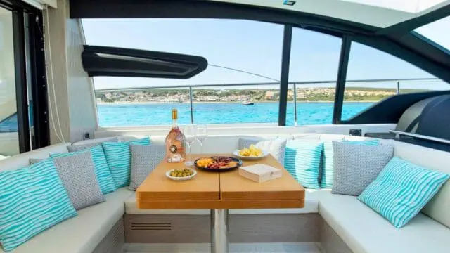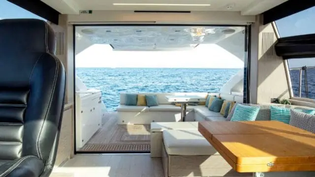 Weitläufige Sonnenflächen am Bug, eine elegante Lounge im Cockpit und großzügige Sitzbereiche bieten perfekte Orte zum Entspannen und Genießen. Ob Sonnenbaden, geselliges Beisammensein oder ein Bad im kristallklaren Wasser – hier erleben Sie Mallorca in absoluter Exklusivität.